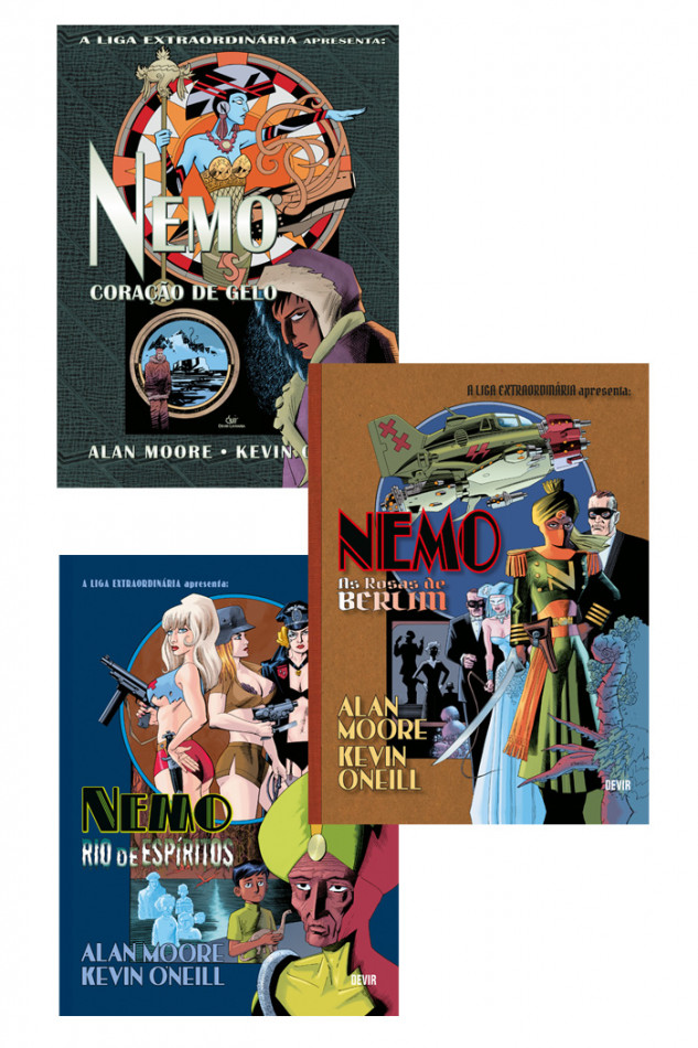 Pack com os 3 volumes da série Nemo de Alan Moore e Kevin O´Neill: Coração de Gelo, Rosas de Berlin e Rio de Espíritos Estamos em 1925. Quinze anos se passaram desde que Janni Dakkar fugiu de seu pai, apenas para aceitar seu destino como a nova “Nemo”, capitã do lendário Nautilus. Entediada com sua vida de intermináveis saques e destruição, Janni parte numa grandiosa expedição para superar a grande falha de seu pai: a exploração da gélida Antártida. No seu encalço, entretanto, está um trio de inventores contratado por uma figura influente no mundo editorial, que deseja recuperar os tesouros roubados de uma rainha africana. É uma corrida mortal até o fim do mundo – uma terra desconhecida repleta de terrores, onde o tempo se perde e as montanhas enlouquecem. Cada volume possui 64 páginas e miolo em papel couché. Esse Pack inclui: 01 unidade Nemo Coração de Gelo 01 unidade Nemo Rios de Espírito 01 unidade Nemo Rosas de Berlim